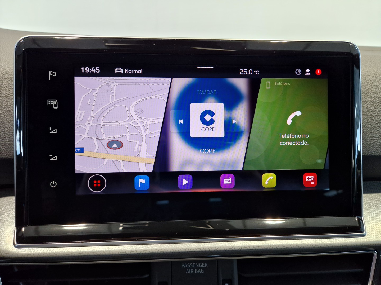 Sistema infoentretenimiento Media System Plus. Pantalla táctil a color de 20,3cm (8"), Full Link (Apple CarPlay, Android Auto y Mirror Link), Tarjeta SD y lector de CD, Bluetooth y control por voz, 3 puertos USB Tipo A (2 delante y 1 detrás) y AUX-IN Jack