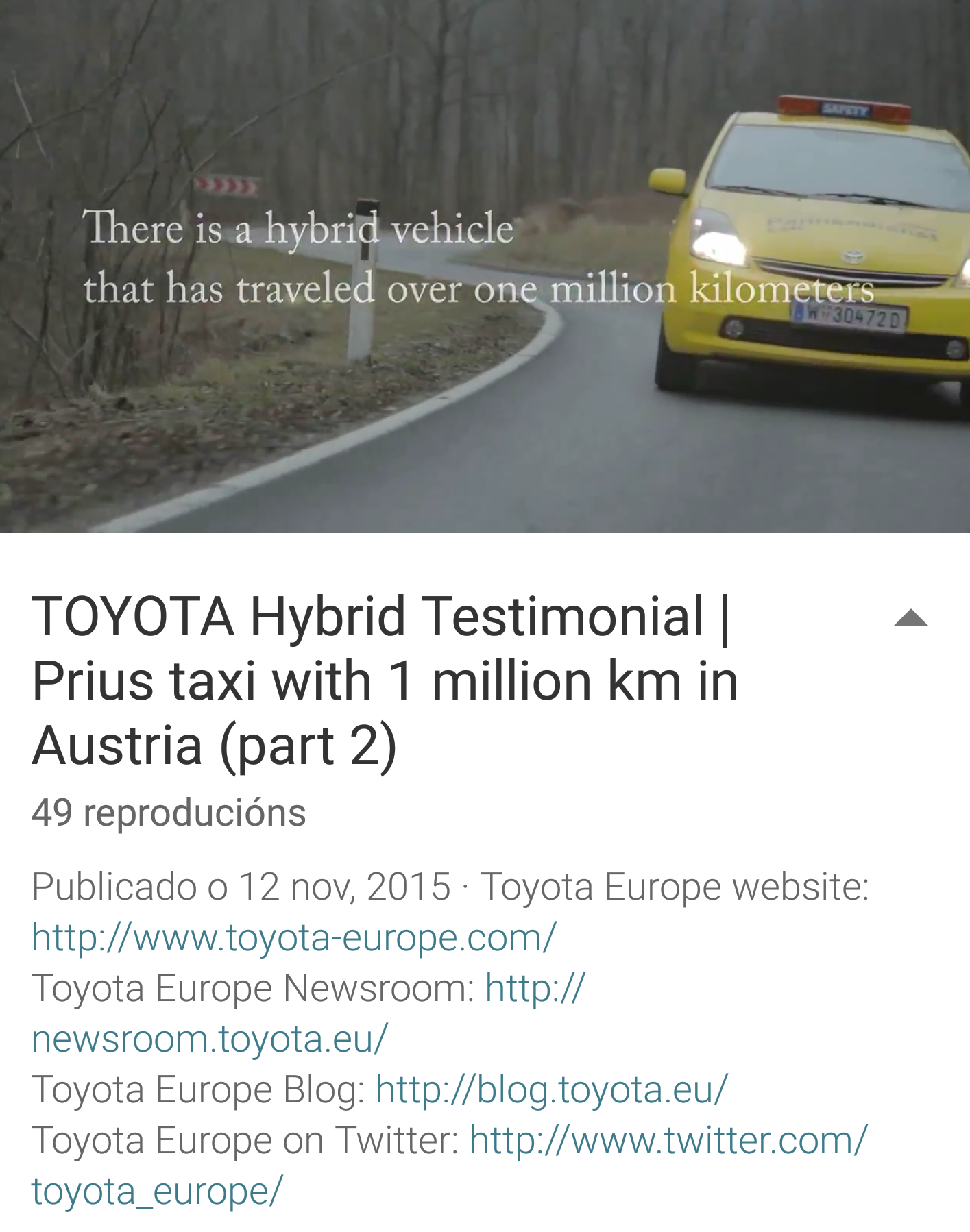 Otro cliente comenta en Yotube su experiencia conduciendo 1.000.000 de kilómetros en un Toyota Prius