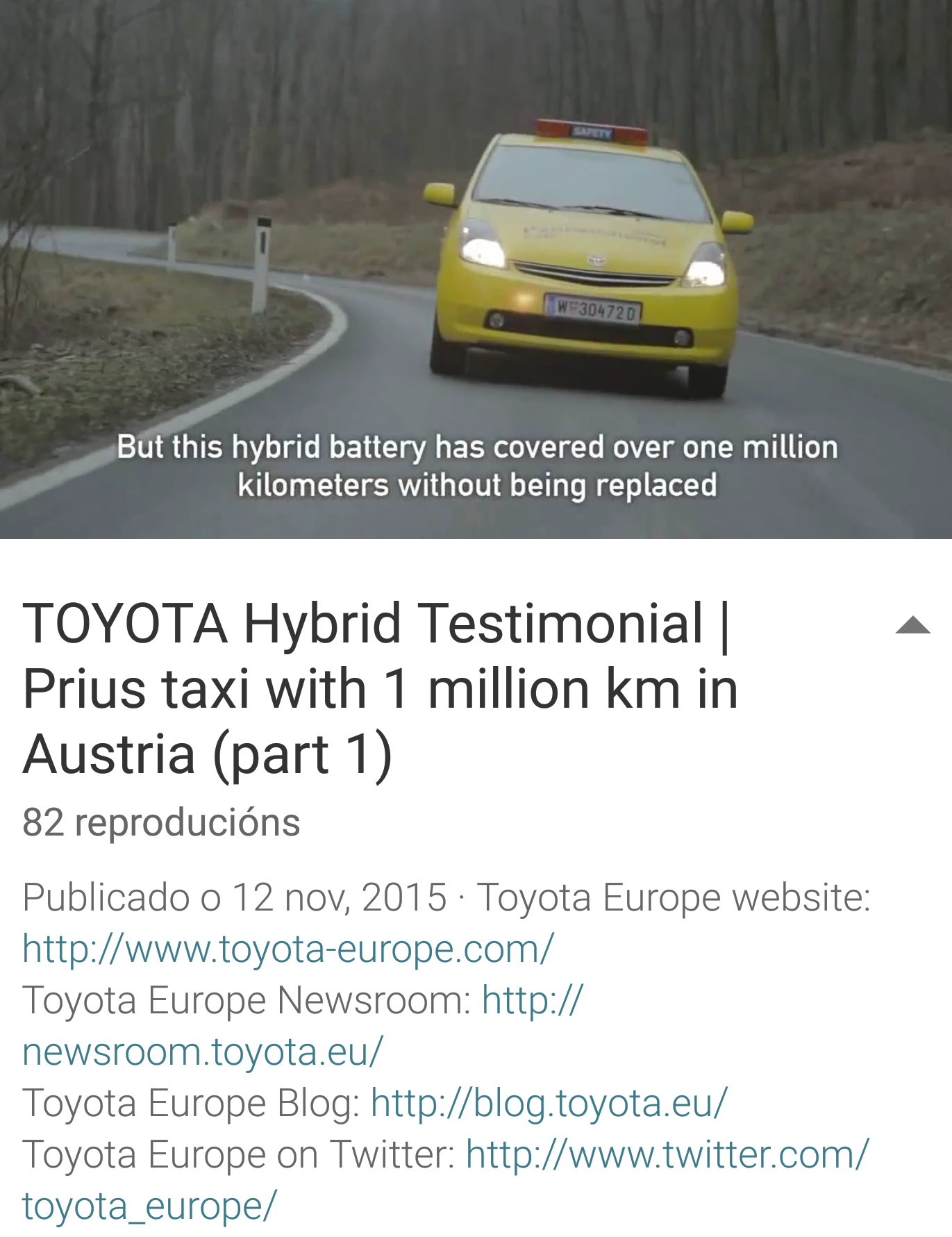 Otro cliente comenta en Yotube su experiencia conduciendo 1.000.000 de kilómetros en un Toyota Prius